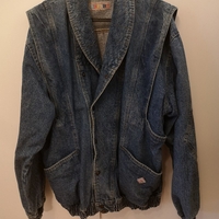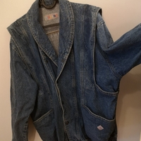 Vintage sininen farkkutakki, väljä malli ja taskut.