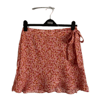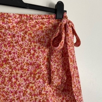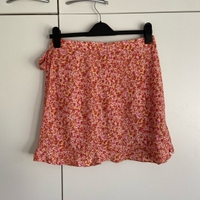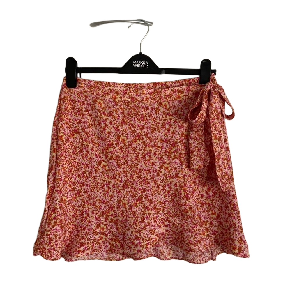 Punaoranssi lyhyt kietaisuhame. Koko S. Viskoosia. Uudenveroinen. Ilmainen toimitus koodilla MO3428.