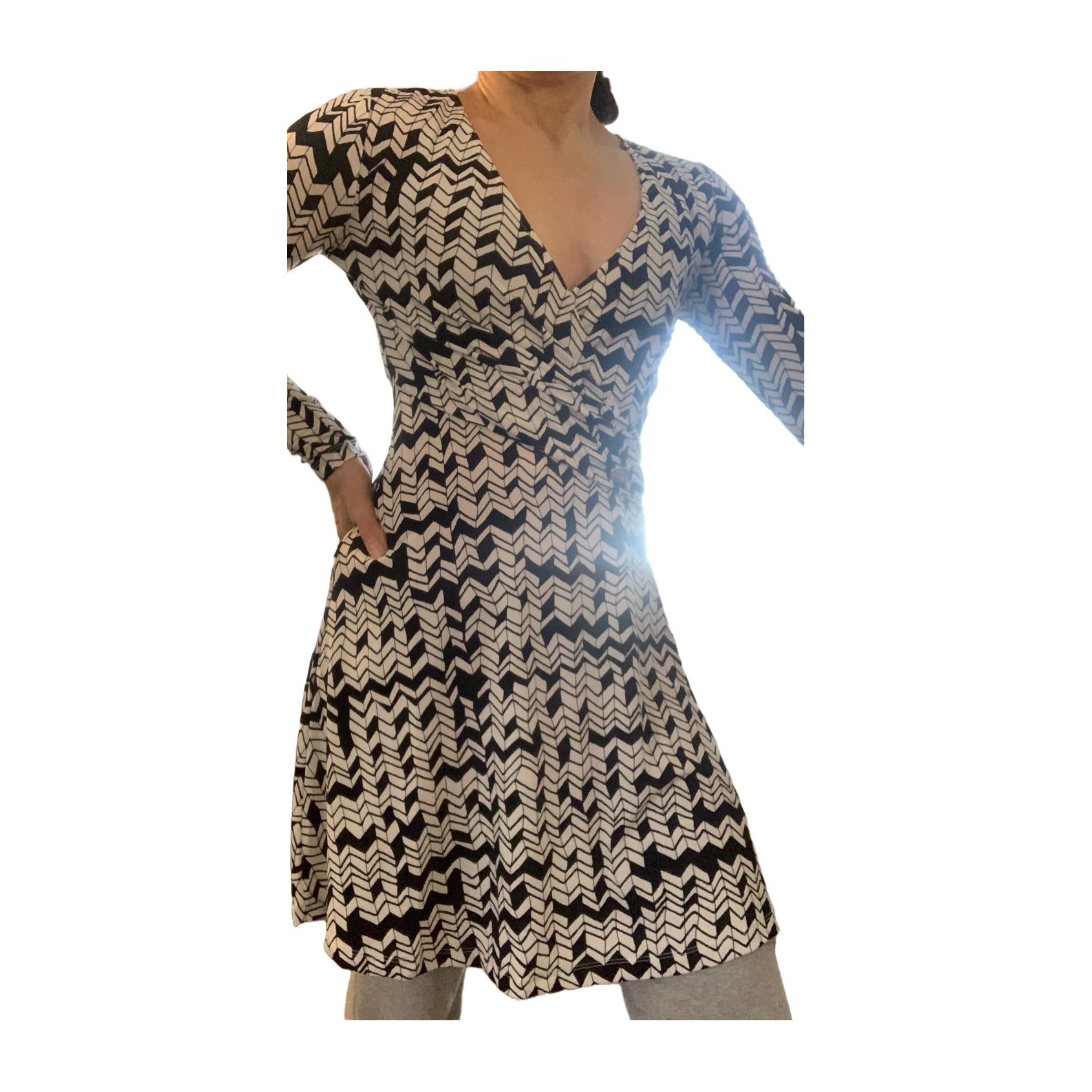 Tyylikäs musta-valkoinen mekko, koko XS.