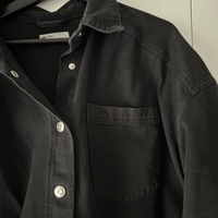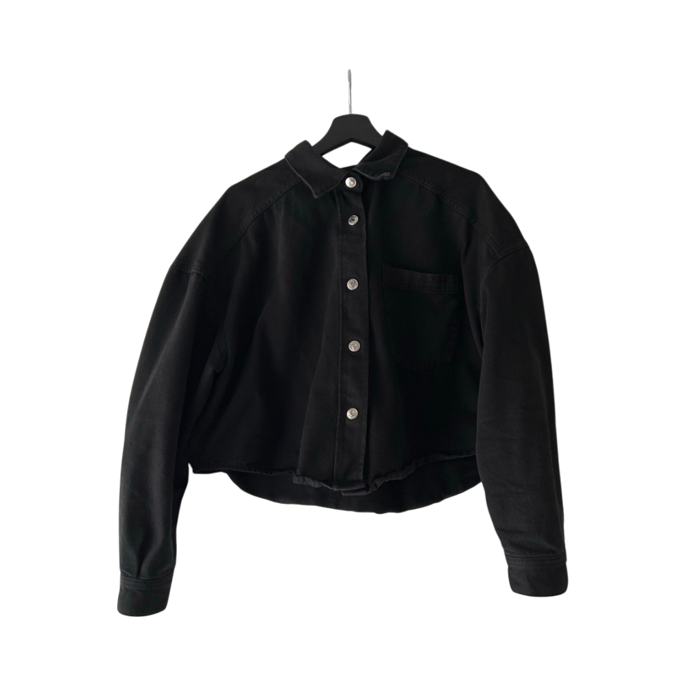 Siistikuntoinen, lyhyt musta denimtakki, koko L.