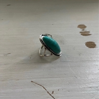 Hopeinen sormus turkoosilla kivellä, kaunis koru