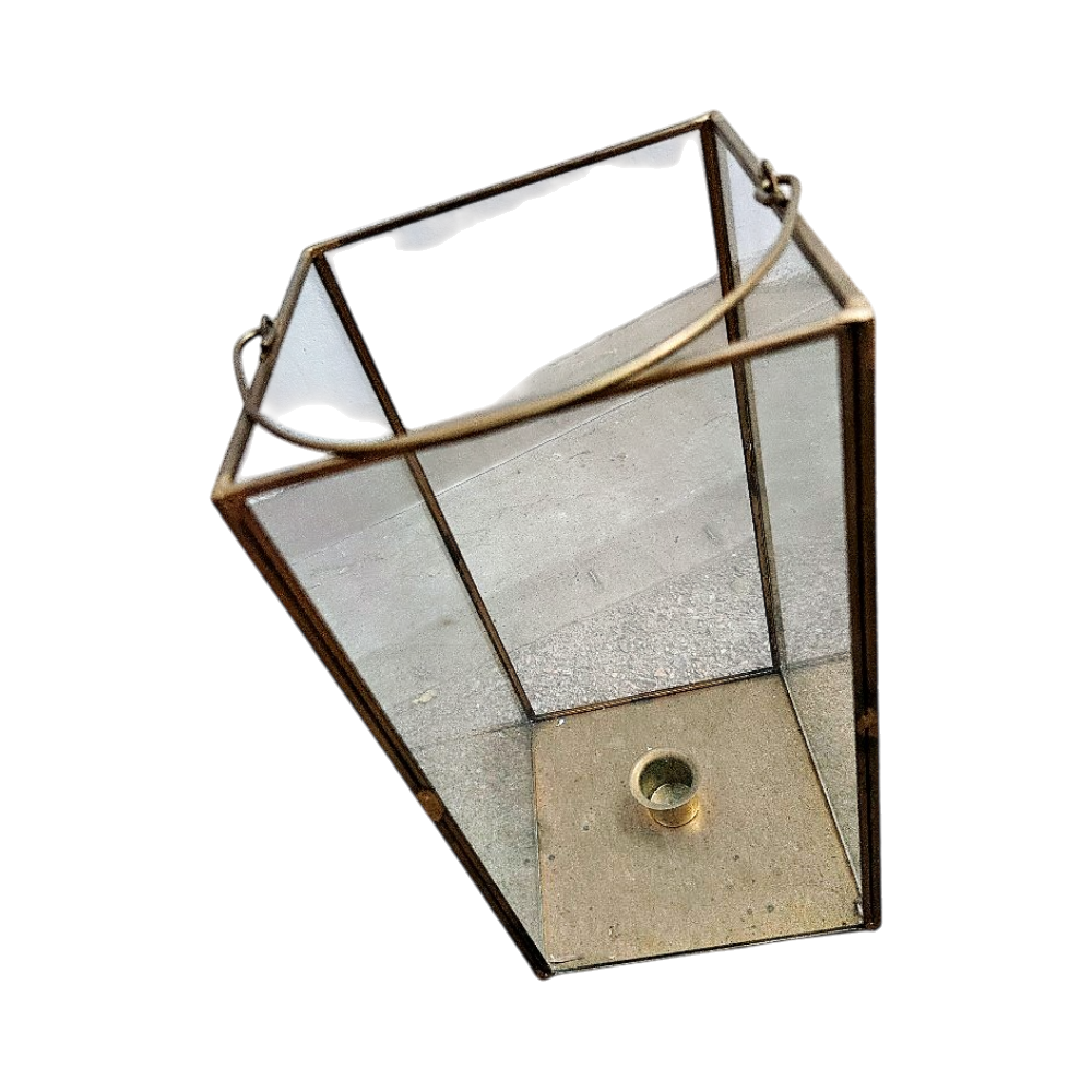 Kultakehyksinen lasilyhty kynttilälle, koristeellinen ja tyylikäs
