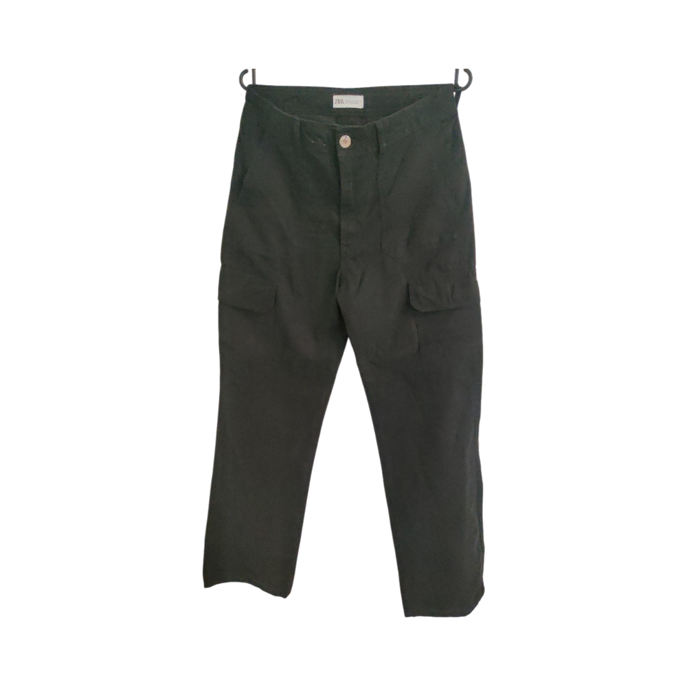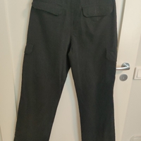 Mustat, suorat cargo-housut taskuilla, koko EUR 38. Vähän käytetty. Hajusteeton pesu, ei lemmikkejä eikä tupakointia.