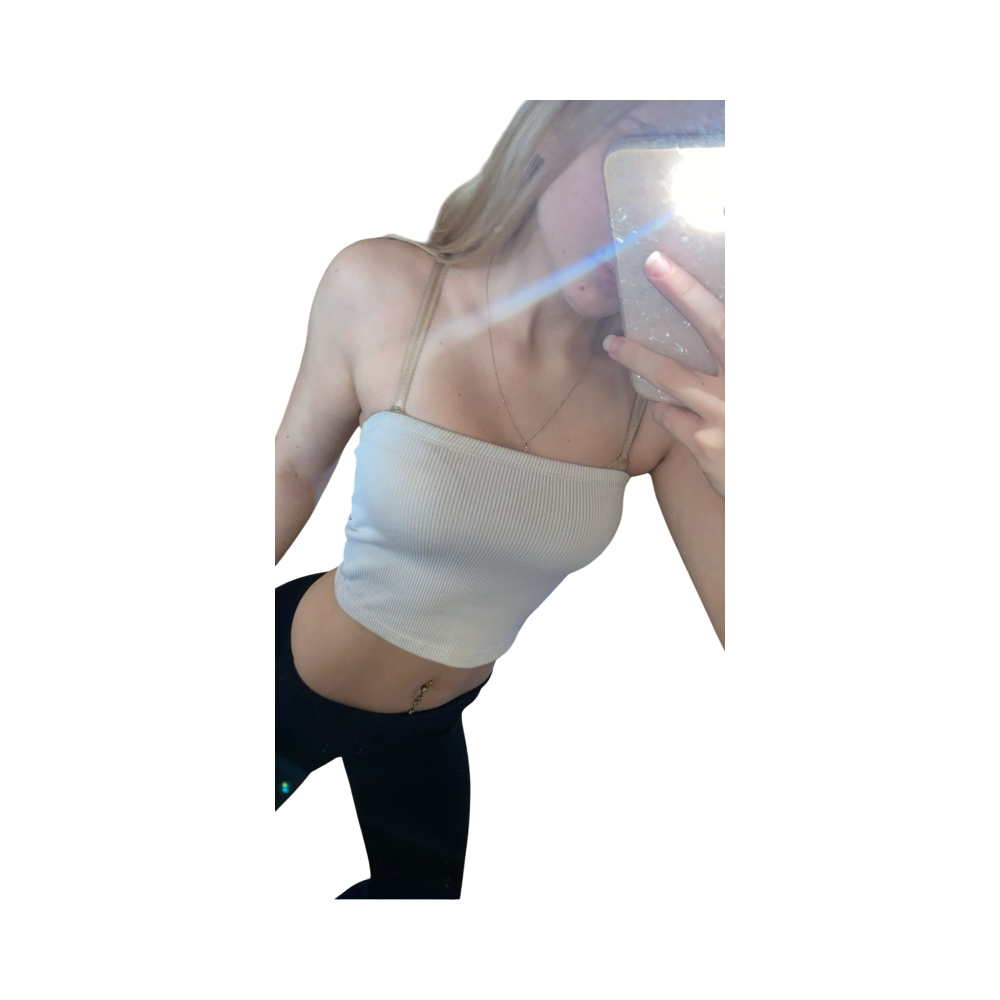 Tiivis ribbattu lyhyt toppi olkaimilla.