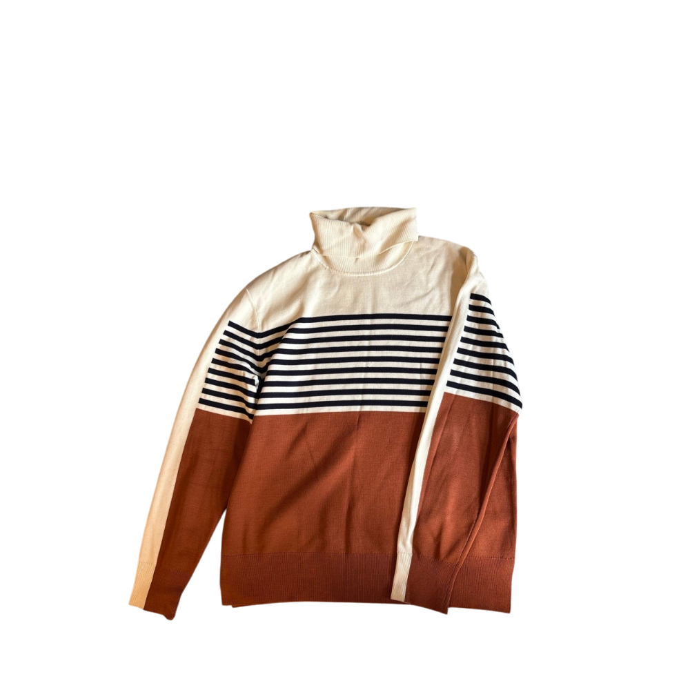 Naisille, toppaukseton raidallinen pooloneule, hyvä kunto.
