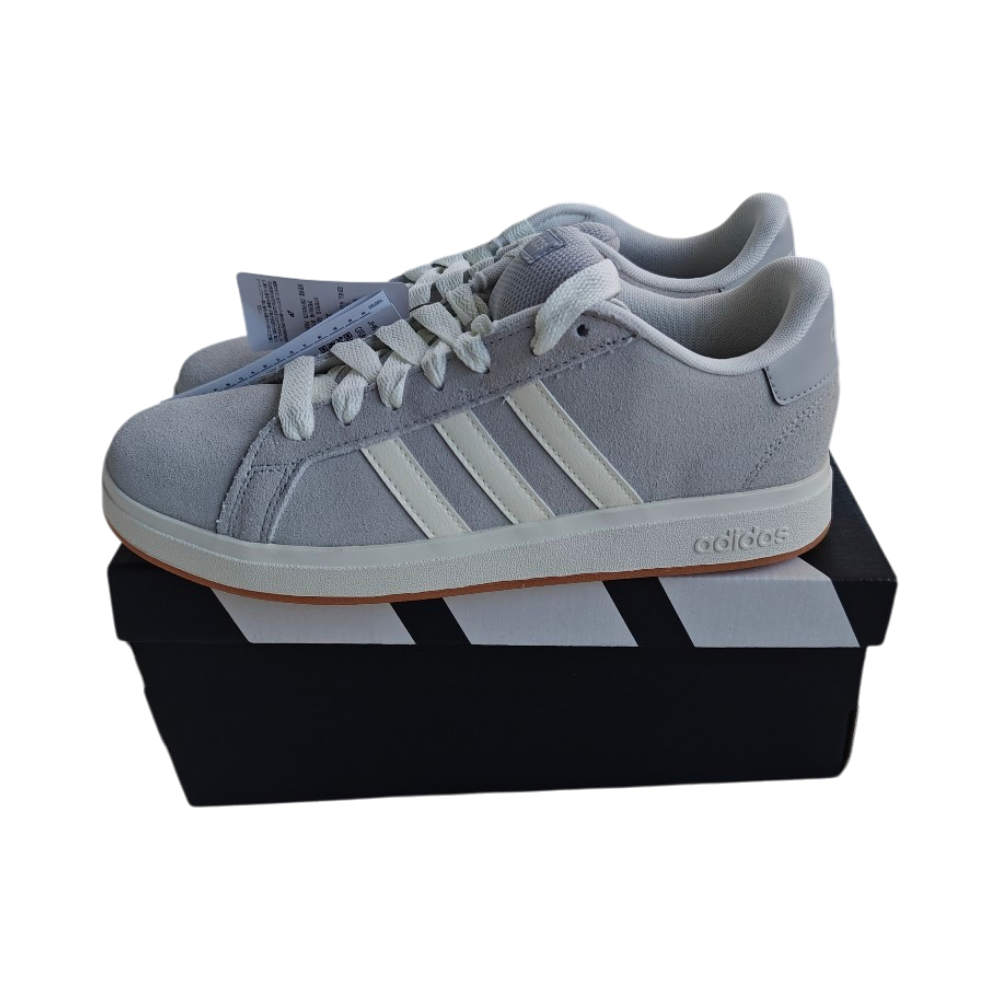 Harmaat Adidaksen kengät. Grand court 00',