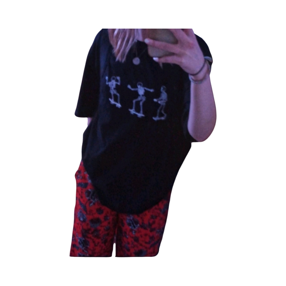 Oversize musta t-paita valkoisella luurankoprintillä. S-L kokoa koska oversize. Ostamalla tämän tuotteet, tuet mun rahan keräämistä tulevaa koulun Rooman matkaa varten. Kiitos 💞
