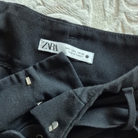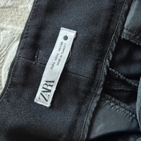 Zaran mustat nilkkapituiset housut. Vetoketju, vyö ja napit vyötörällä. Käytetty mutta siistissä kunnossa.