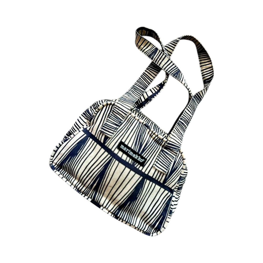 Beige mustavalkoinen Marimekko olkalaukku