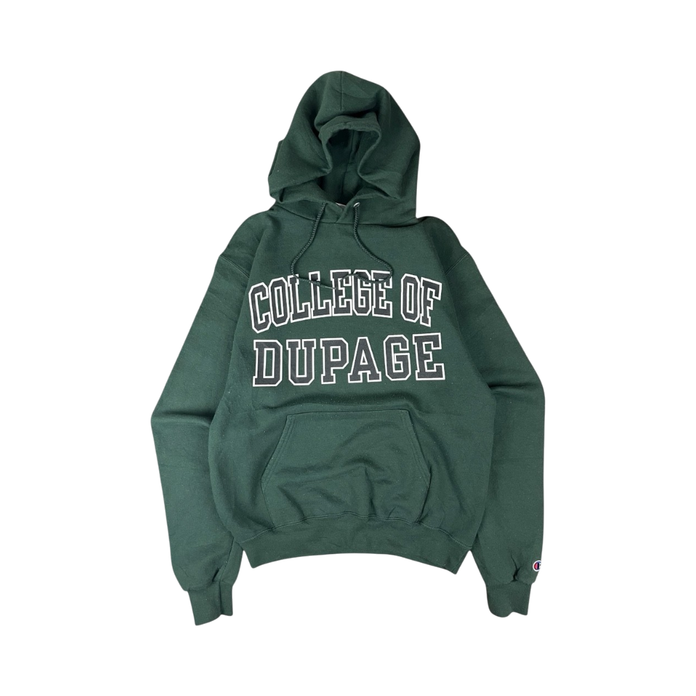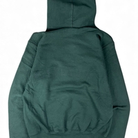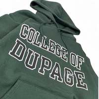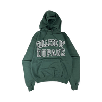 Vihreä collegemallinen huppari, etutaskulla ja printillä.