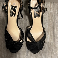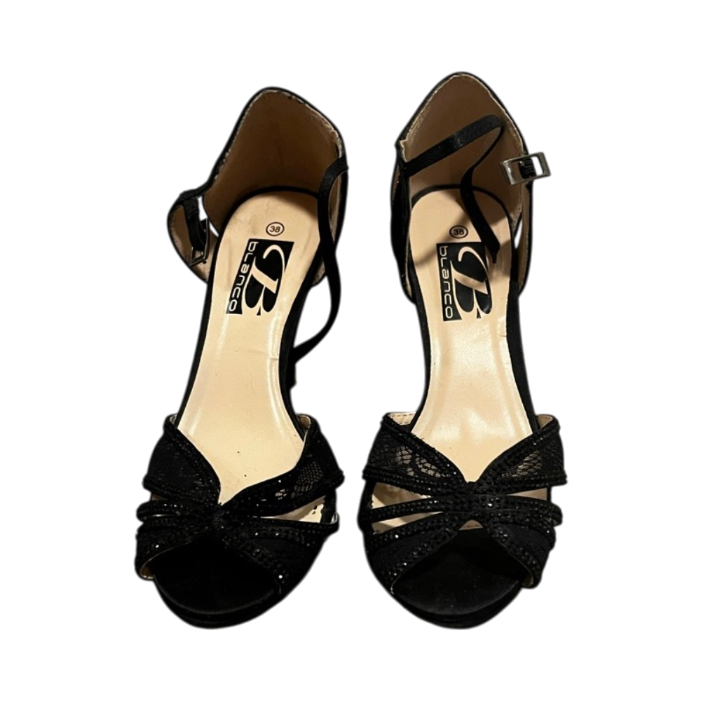 Nilkkaremmi-korkokengät , koristeverkkokuvio ja korukivet. Kerran käytetyt