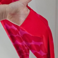 Eye-catching Adidas x Marimekko collaboration leggings in vibrant red and fuchsia.