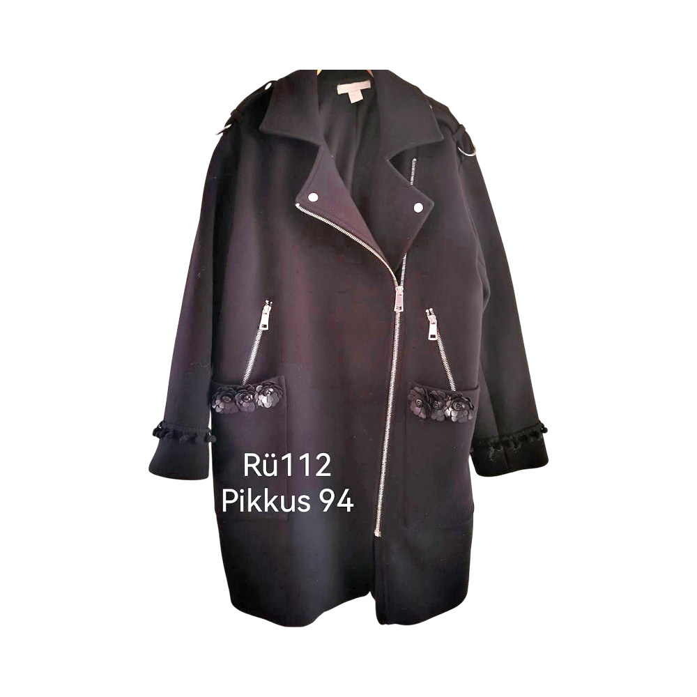 Stylish black coat with floral embroidery details