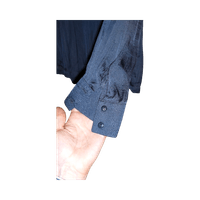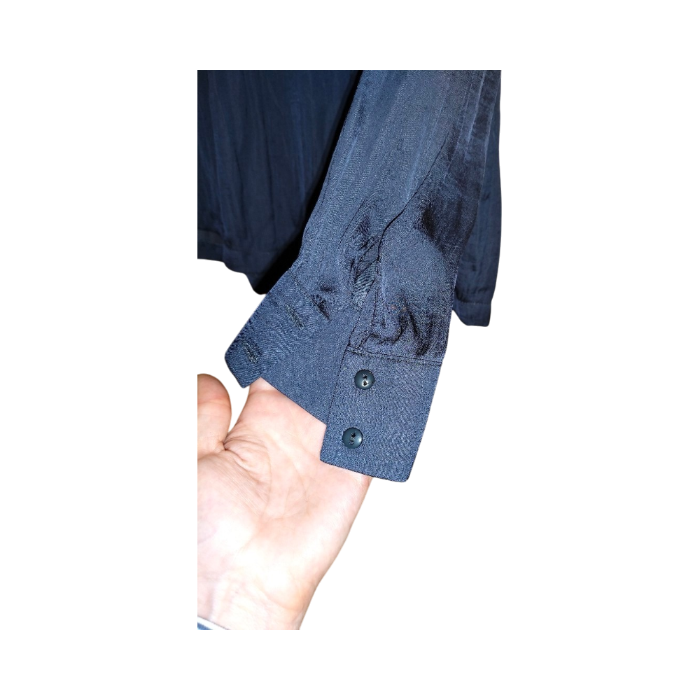Tummansiniharmaa kiiltäpintainen paitapusero kokoa S. Puserossa korkea kaulus ja napitus takana sekä hihansuissa. 100% polyester. Koiratalous. Voidaan sopia myös noudosta akselille Kerava-Korso.