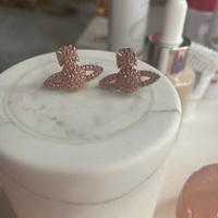 Kauniit vaaleanpunaiset strassikorvakorut.
