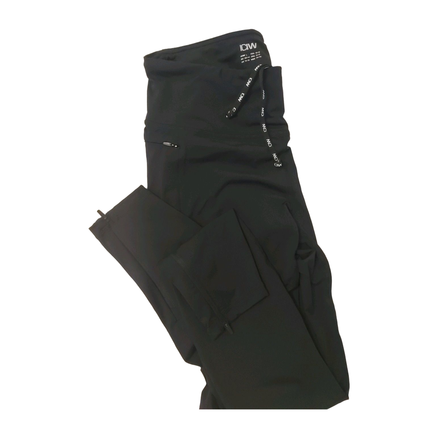 Classic pocket tights, mustat. Oikealla puolella vetoketjutasku, lahkeissa vetoketjut, kiristysnauhat vyötäröllä.