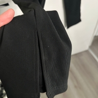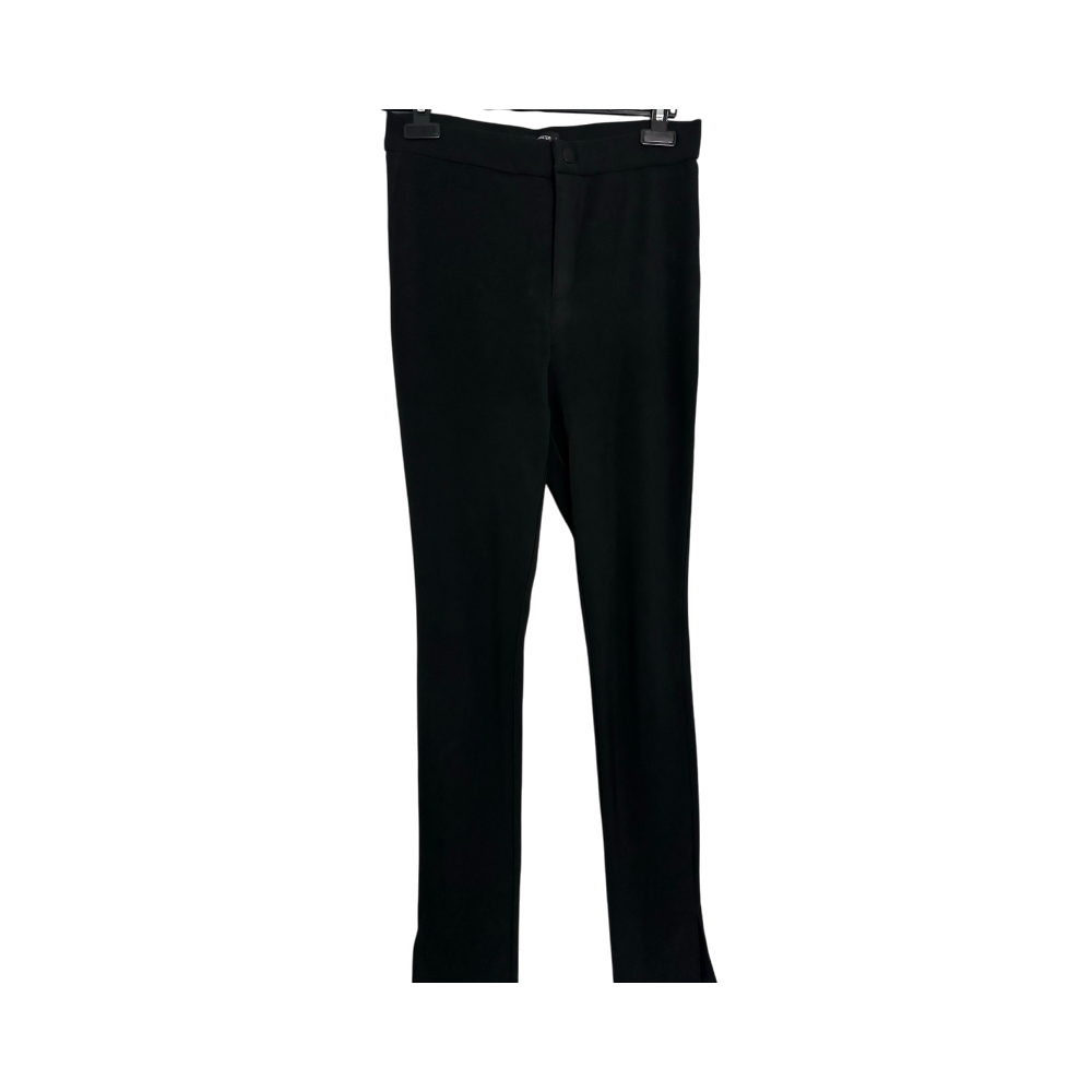 Mustat, suorat naisten housut pienellä halkiolla lahkeessa.