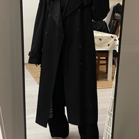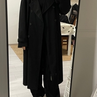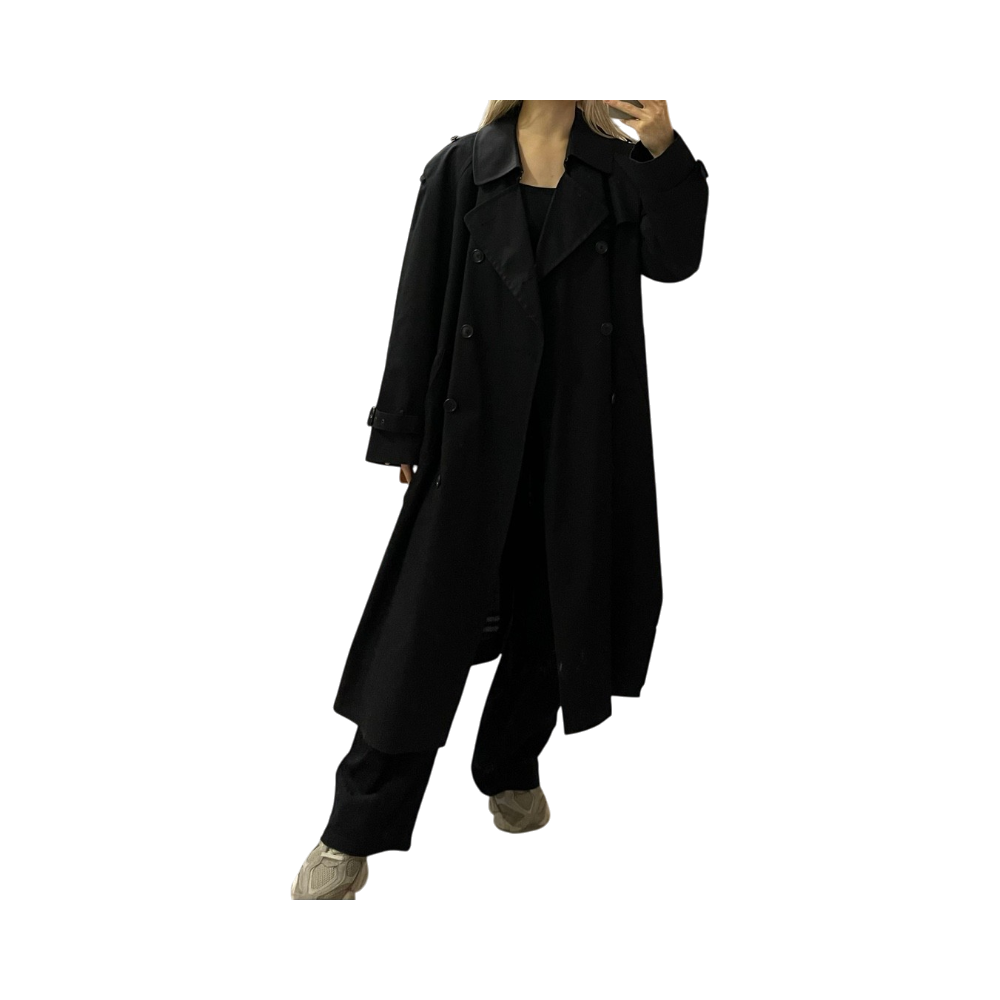 Musta vintage trenssitakki vetoketjulla irrotettavalla vuorella.