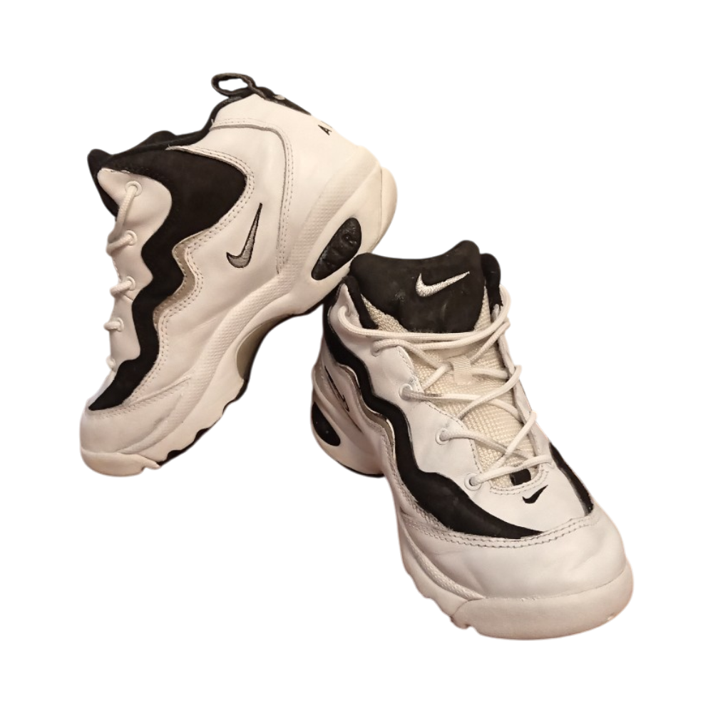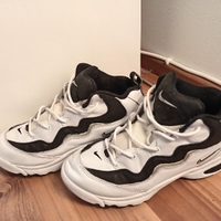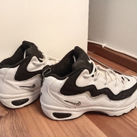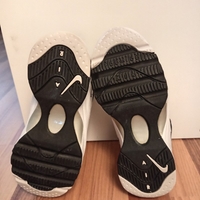 Valkoiset ja mustat Nike-urheilukengät, käytetyt mutta siistit.