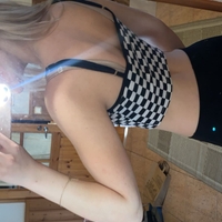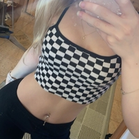 Mustavalkoinen ruudullinen croptop, tiukka istuvuus.