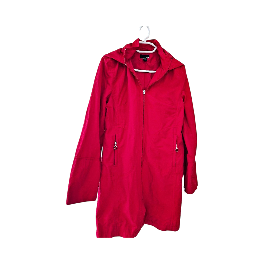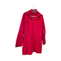 Naisten punainen kevyt takki vetoketjulla ja irrotettavalla hupulla.todella siisti.puuvilla/polyamid