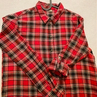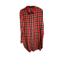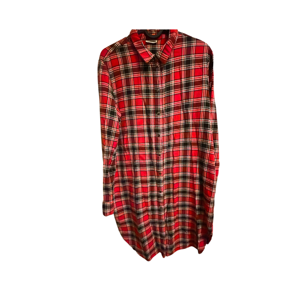 Pitkä ruudullinen napitettava tunika, hyväkuntoinen. Hihat saa napitettua ylös.