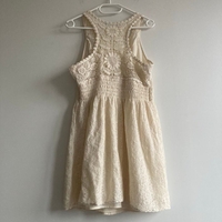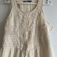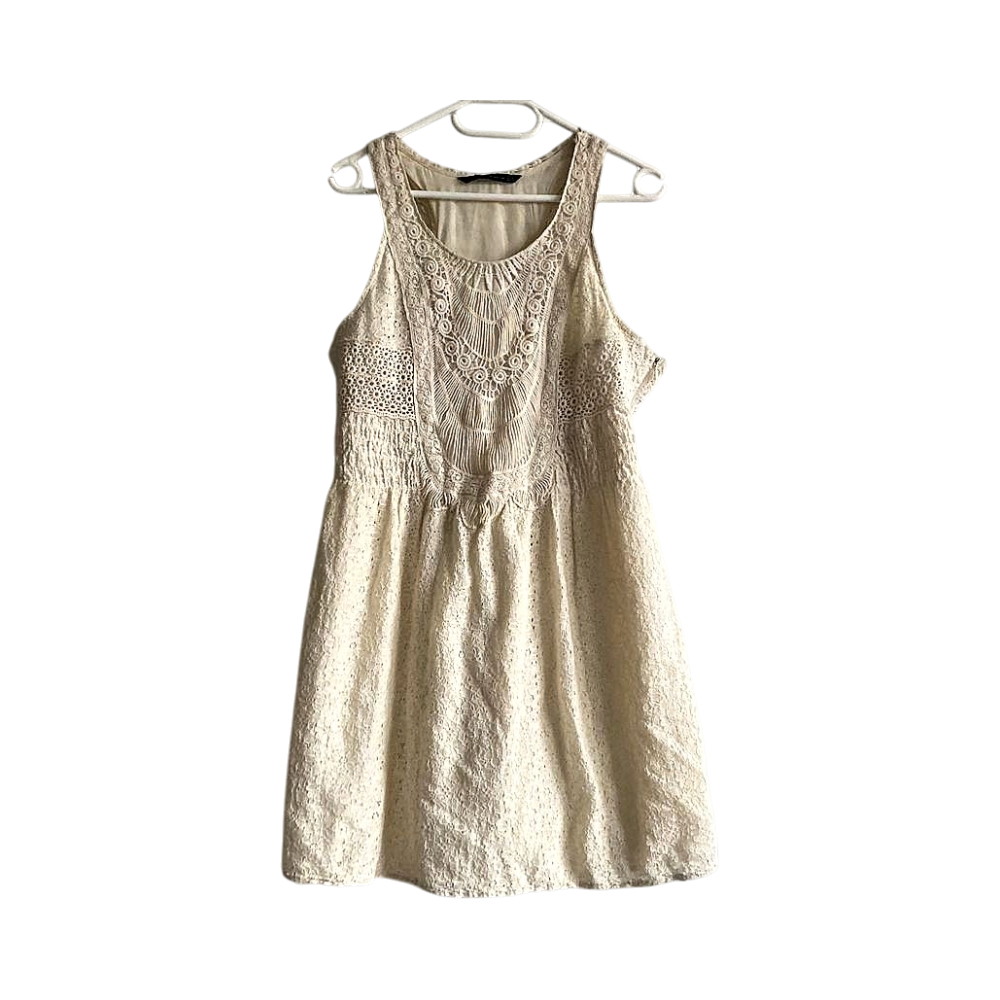 Beautiful cream-white crochet babydoll mini dress by Zara, size M. Sleeveless, A-line shape, side zip and includes a lining so it’s not see-through. Light, feminine and perfect for summer or holidays.