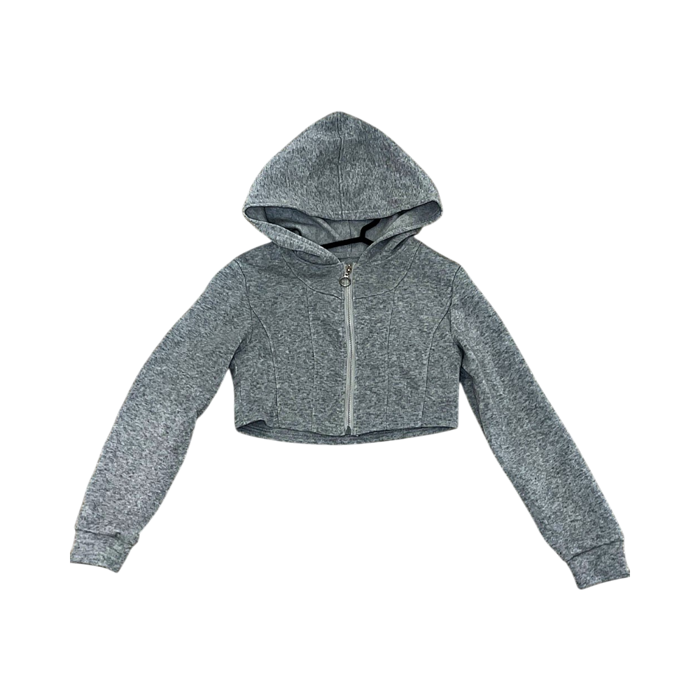 Harmaa vetoketjullinen crop-huppari