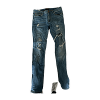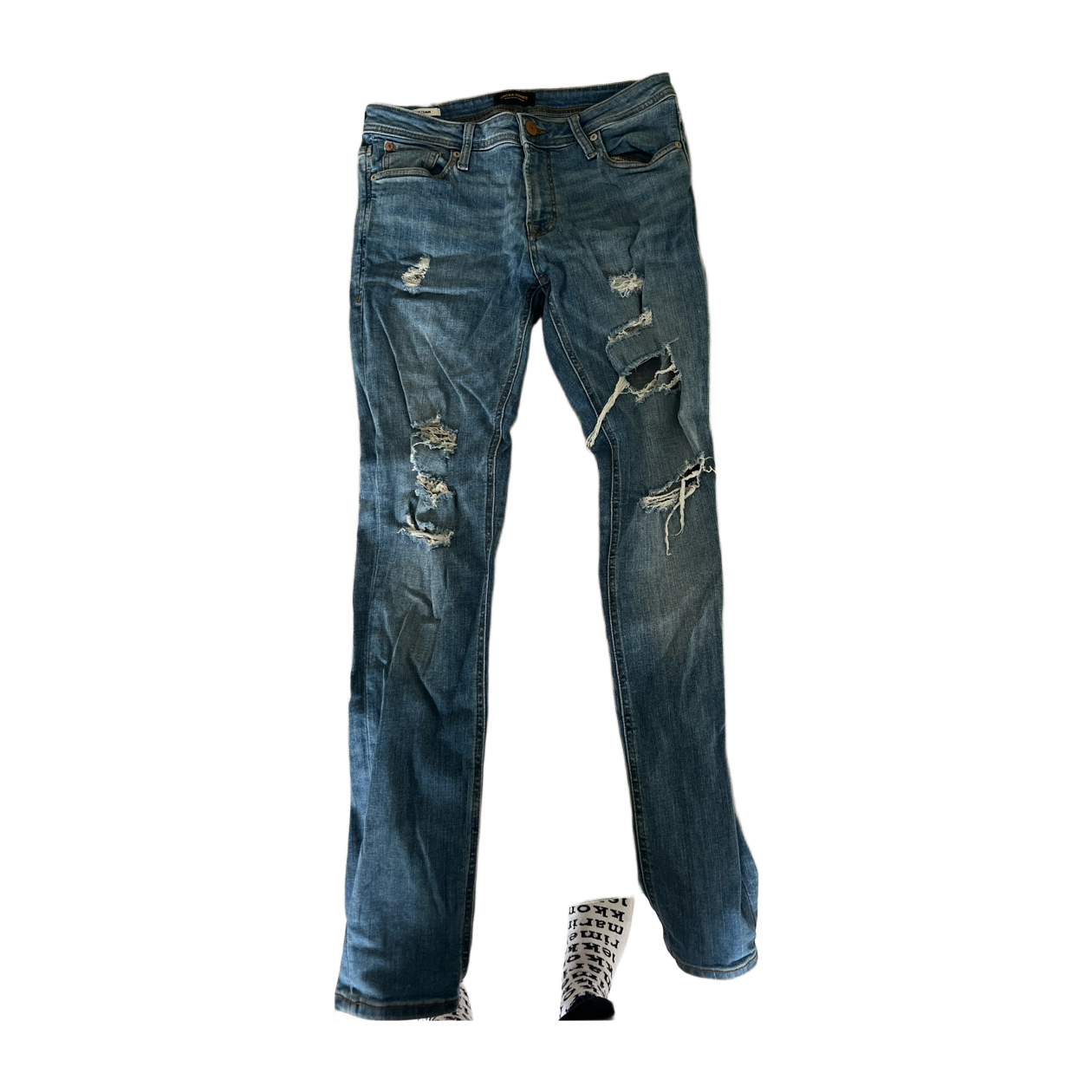 Siniset revityt farkut, slim fit, käytetyn näköiset.