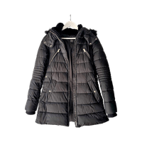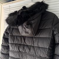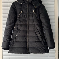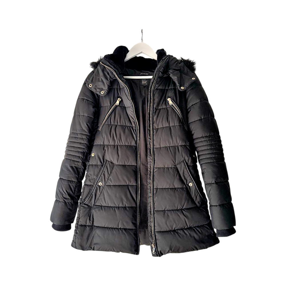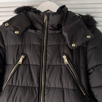 Erinomaisessa kunnossa oleva Zara TRF Outerwear musta toppatakki kullanvärisillä vetoketjuilla. Koko S, ks. tarkemmat mitat alta. Vyötäröä saa säädettyä neppareilla. Huppu on irrotettavissa kokonaan ja hupusta saa myös karvareunuksen irti. Edessä taskut vetoketjuilla ja neppareilla. Savuton koti, ei lemmikkejä.