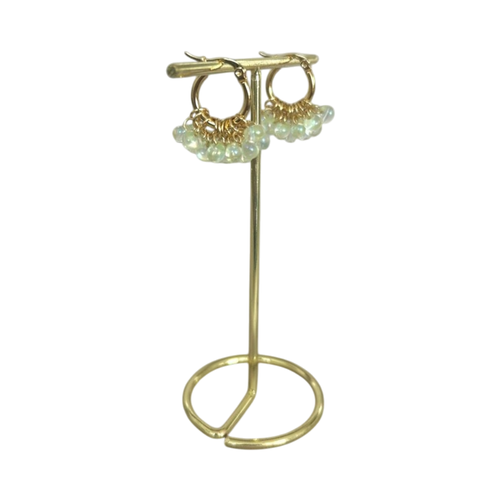Käsintehdyt korvakorut lasihelmillä. Saatavilla sekä hopeisena että kultaisena. Renkaan halkaisija noin 1,5 cm. Lasihelmistä huolimatta hyvin kevyet🫶🏽 Väri: vaaleanvihreä