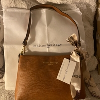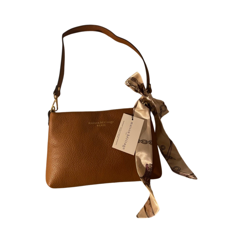 Uusi Maison Héritage Sally- käsilaukku, laput kiinni. Väri: kameli. Kuvassa näkyvä silkkihuivi sisältyy kauppaan. Se on täysin uusi ja käyttämätön, mutta voin myös jättää sen pois, jos et halua sitä. Mukana tulee myös dustbag.
