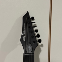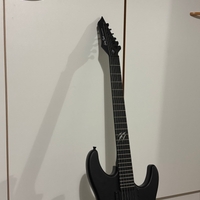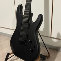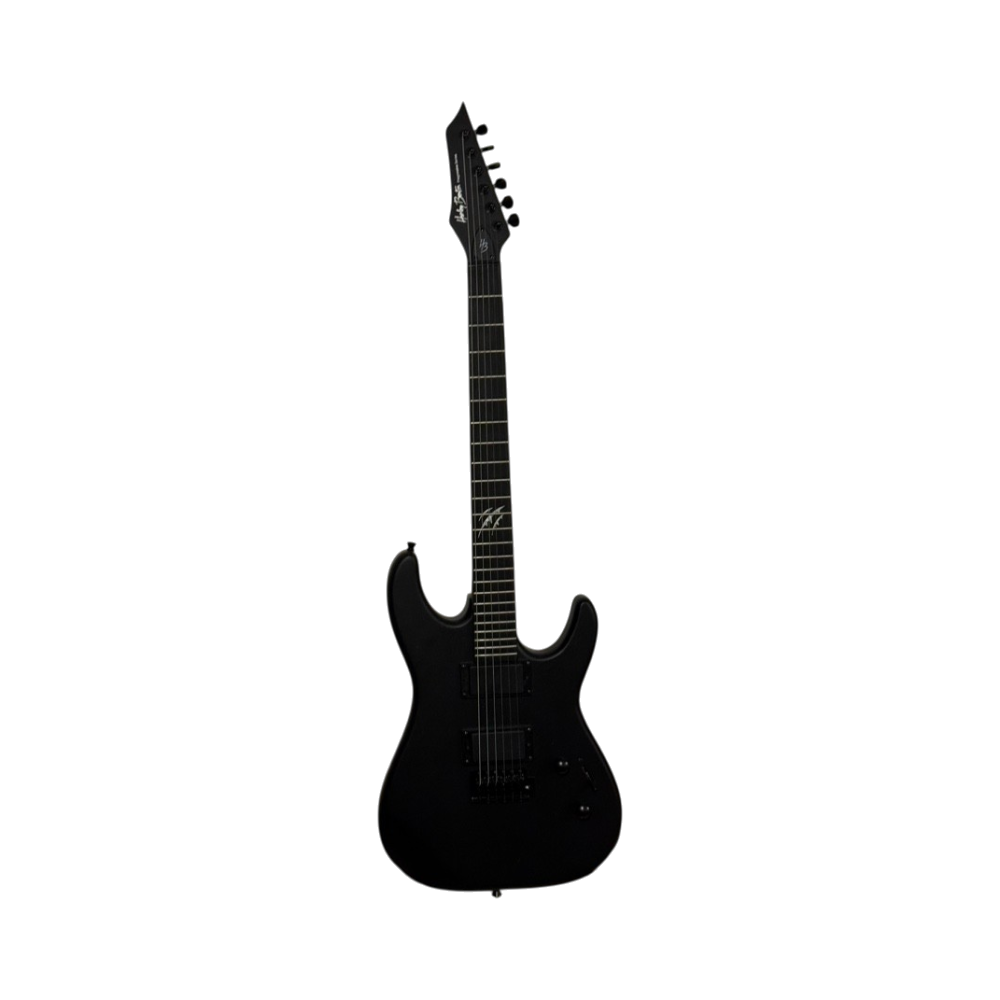 Matte black solid-body electric guitar, dual humbuckers, 6-string.