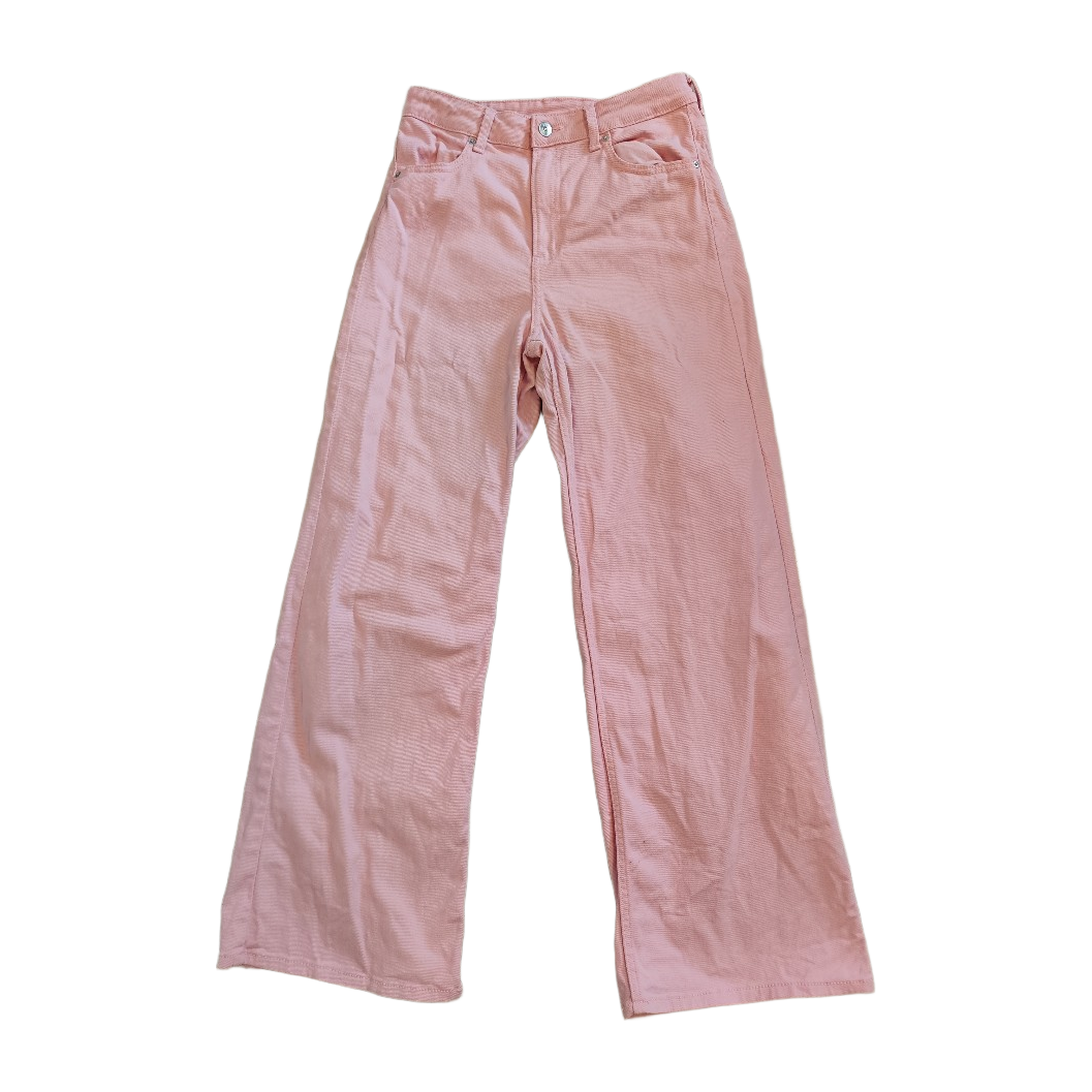 Vaaleanpunaiset housut leveillä lahkeilla, kerran käytetty.