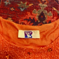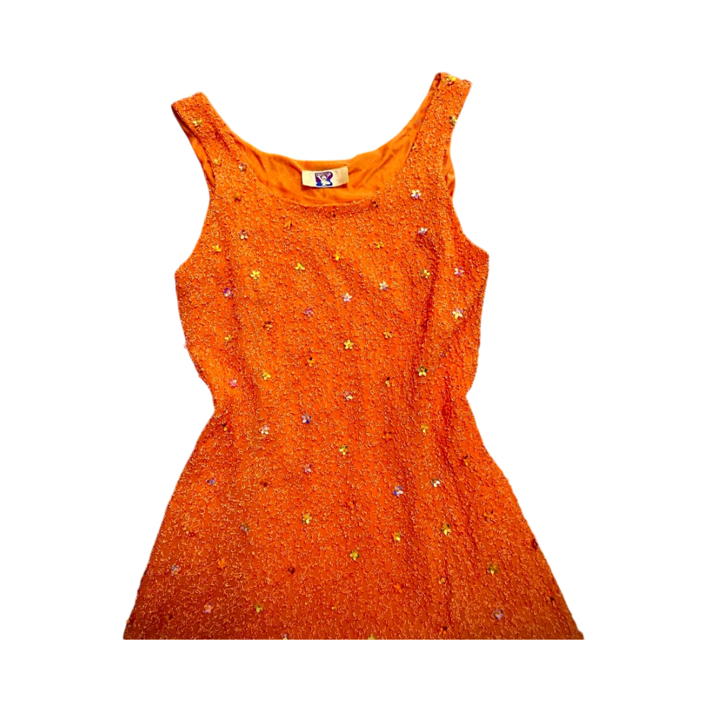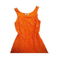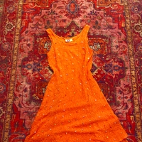 Kirkkaan oranssi paljettikoristeltu mekko, vuorellinen. Super joustava ja pehmeä. Vastaa S/M kokoa