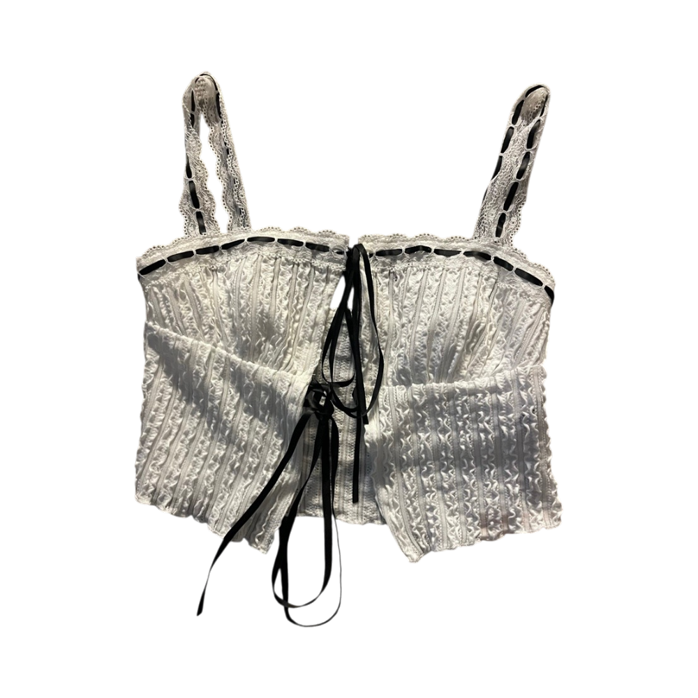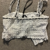 Lyhyt pitsinen olkatoppi mustilla nauhoilla.