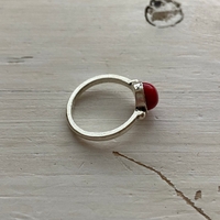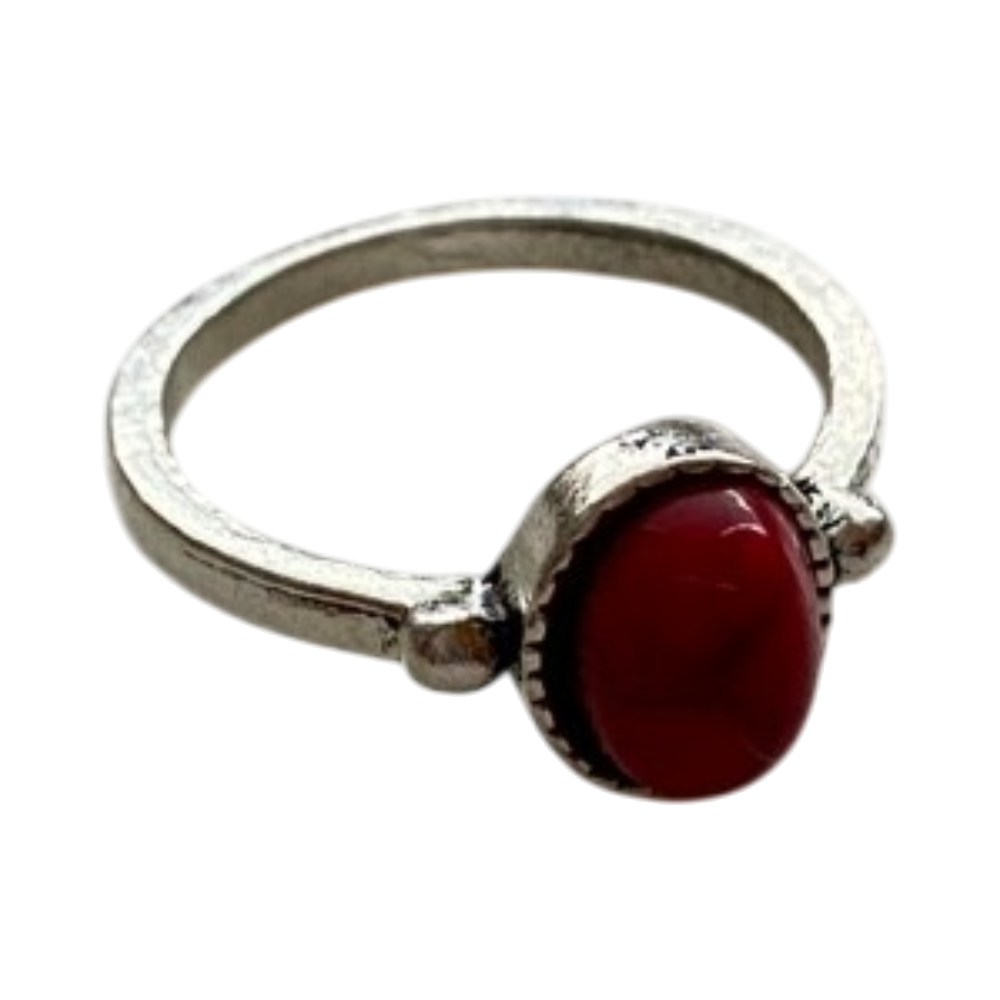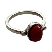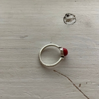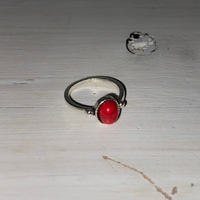 Söpö sormus punaisella kivellä (ei aitoa hopeaa) itsellä mahtuu etu-ja keskisormiin, tarkempaa kokoa en osaa sanoa