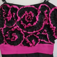 Kaunis juhlamekko, yläosa joustavaa materiaalia. Irroitettavat ja säädettävät olkaimet.