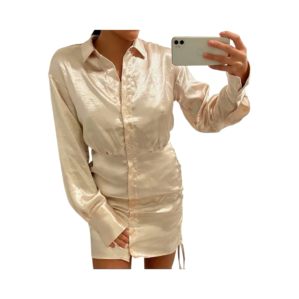 satin party cocktail dress satiininen mekko juhlamekko cocktailmekko partydress satindress shirtdress cocktaildress minidress minimekko paitamekko long sleeve newyear new year newyears uusivuosi newyearsdress h&m mango ginatricot bik bok bikbok bershka stradivarius asos vila brandy melville nelly nakd pull&bear