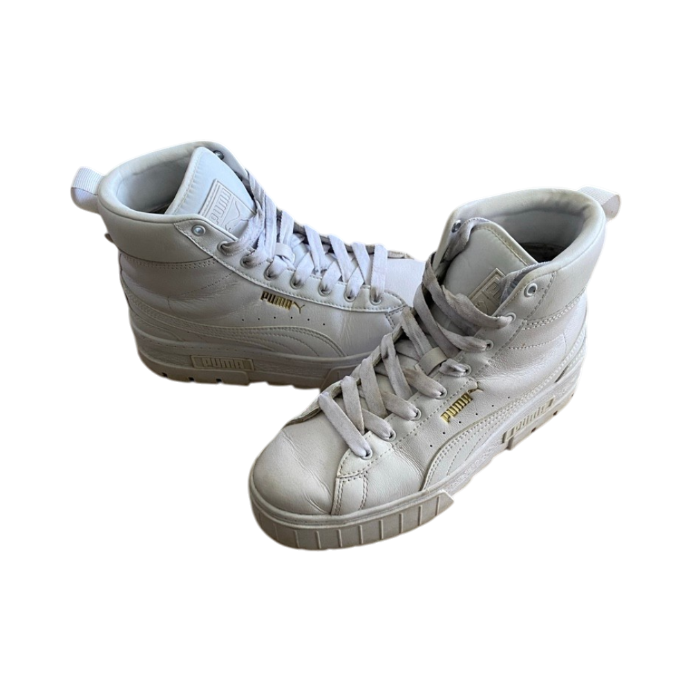 Valkoiset nahkajäljitelmä tennarit platform pohjalla.