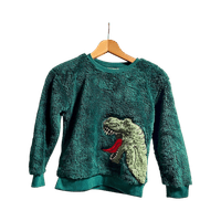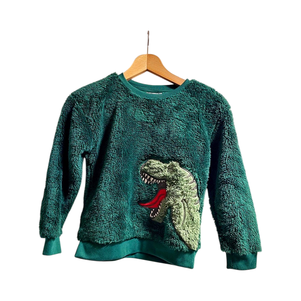 Pehmeä karvainen lapsen pusero dinosaurusapplikaatiolla, hyväkuntoinen. Peuhu-merkkinen, koko 130.
