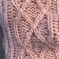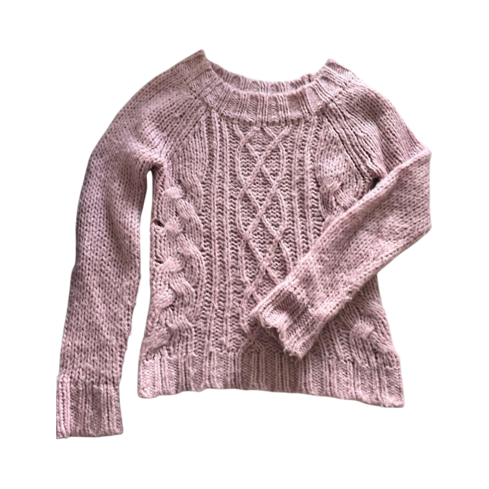 Vaaleanpunainen paksu palmikkoneule, lämmin ja pehmeä.