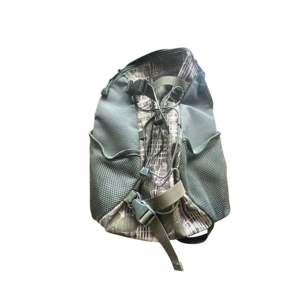 Vihreä päiväreppu, mesh-taskut ja säädettävät olkahihnat.