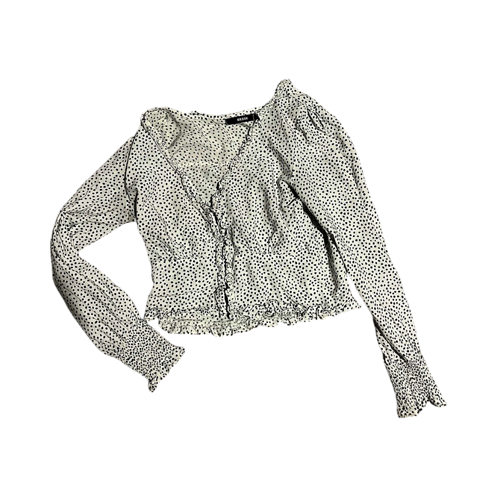 Tyylikäs valkoinen pilkkupaita, kevyt ja mukava.