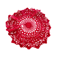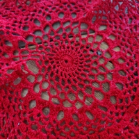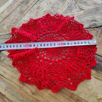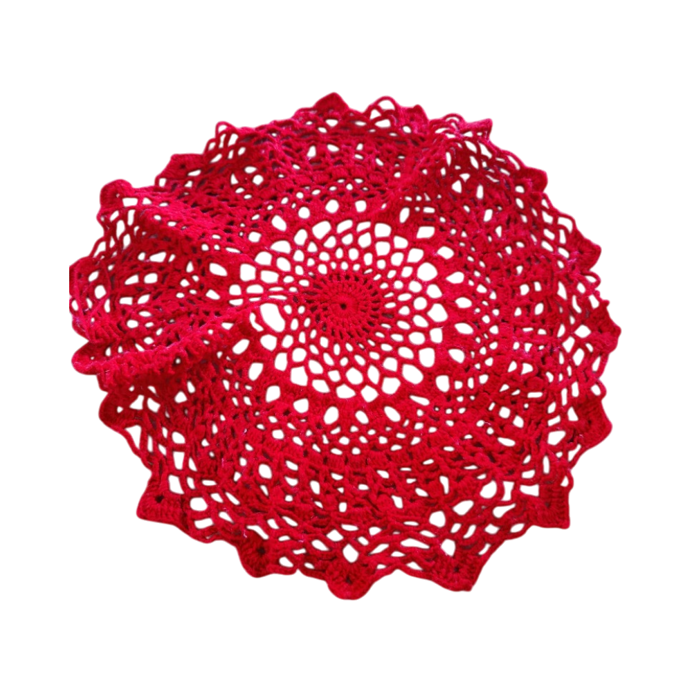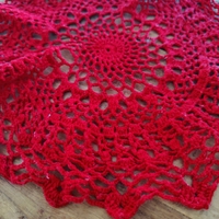 punainen virkattu pöytäliina