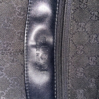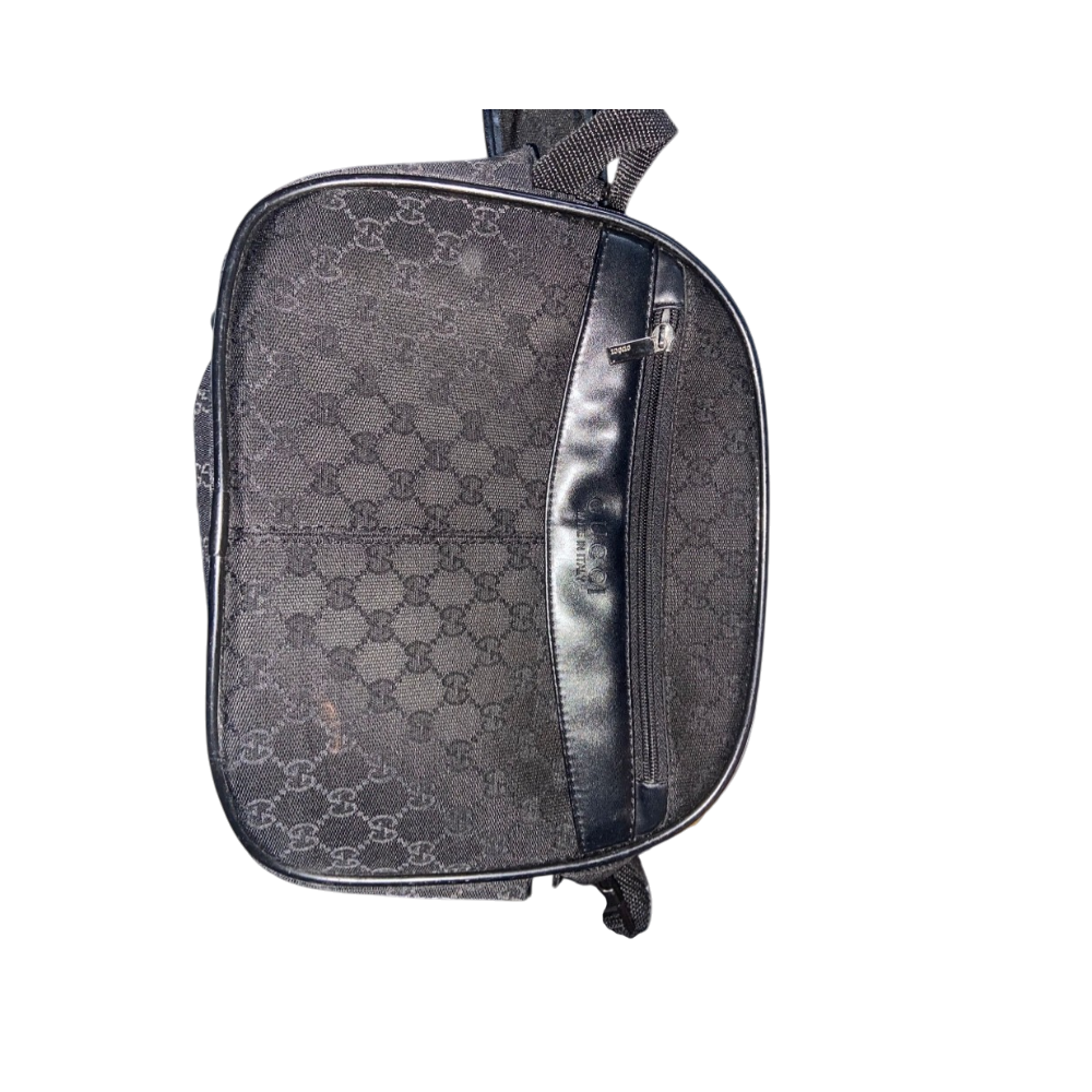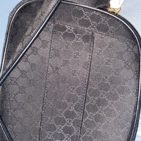 Mustaa GG-kuviollista kangasta ja nahkayksityiskohtia, hyväkuntoinen.