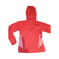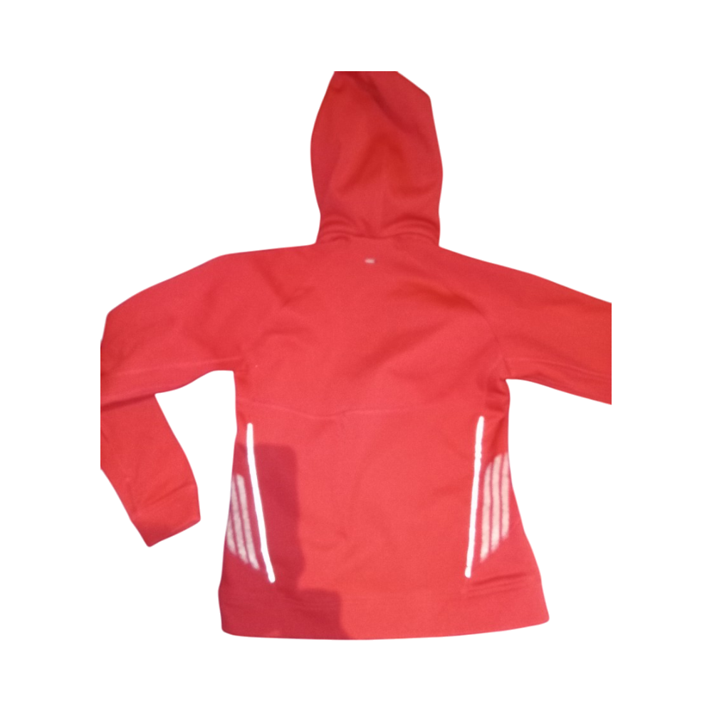Punainen vetoketjullinen naisten huppari heijastavilla yksityiskohdilla., erittäin siisti ja koko 42 mutta vastaa 38 kokoa,aito Adidas tuote