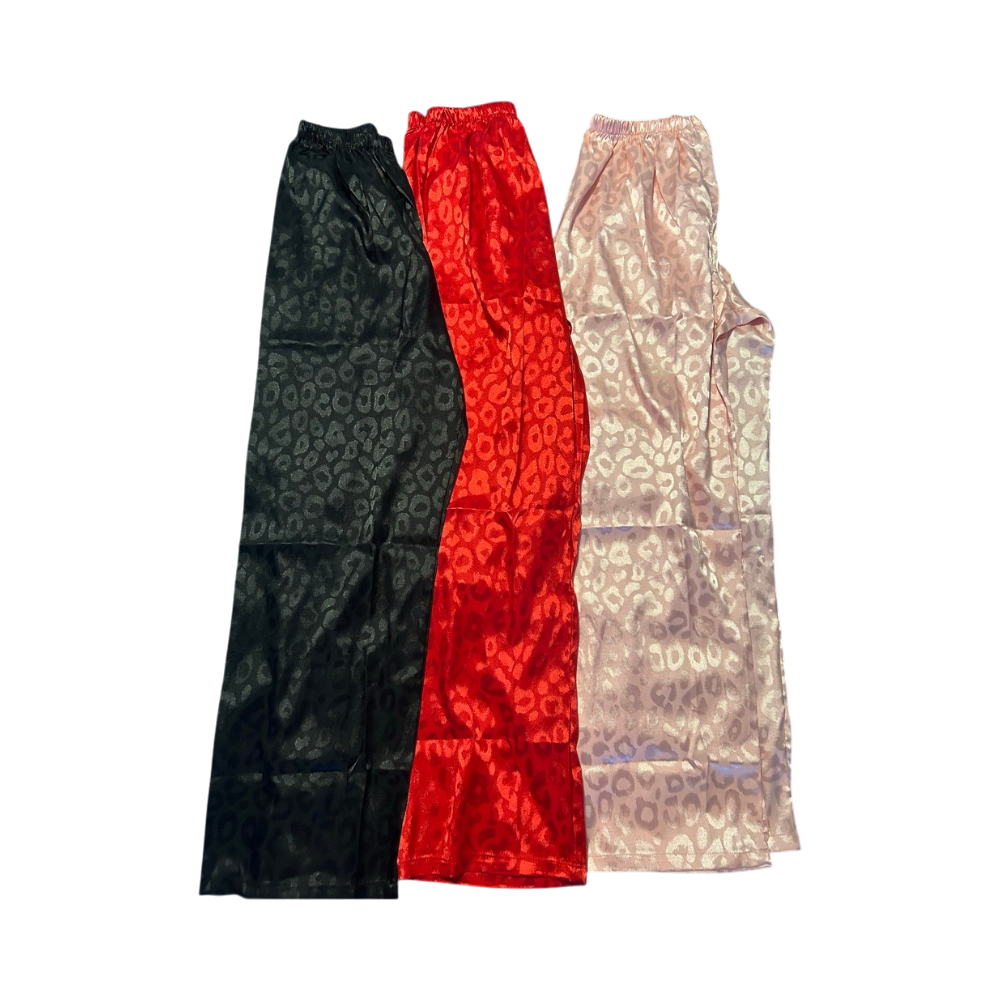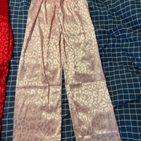 Pink satin wide-leg trousers with elastic waist, leopard jacquard. New with a bag it came, didnt have tags but those r new.