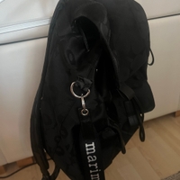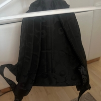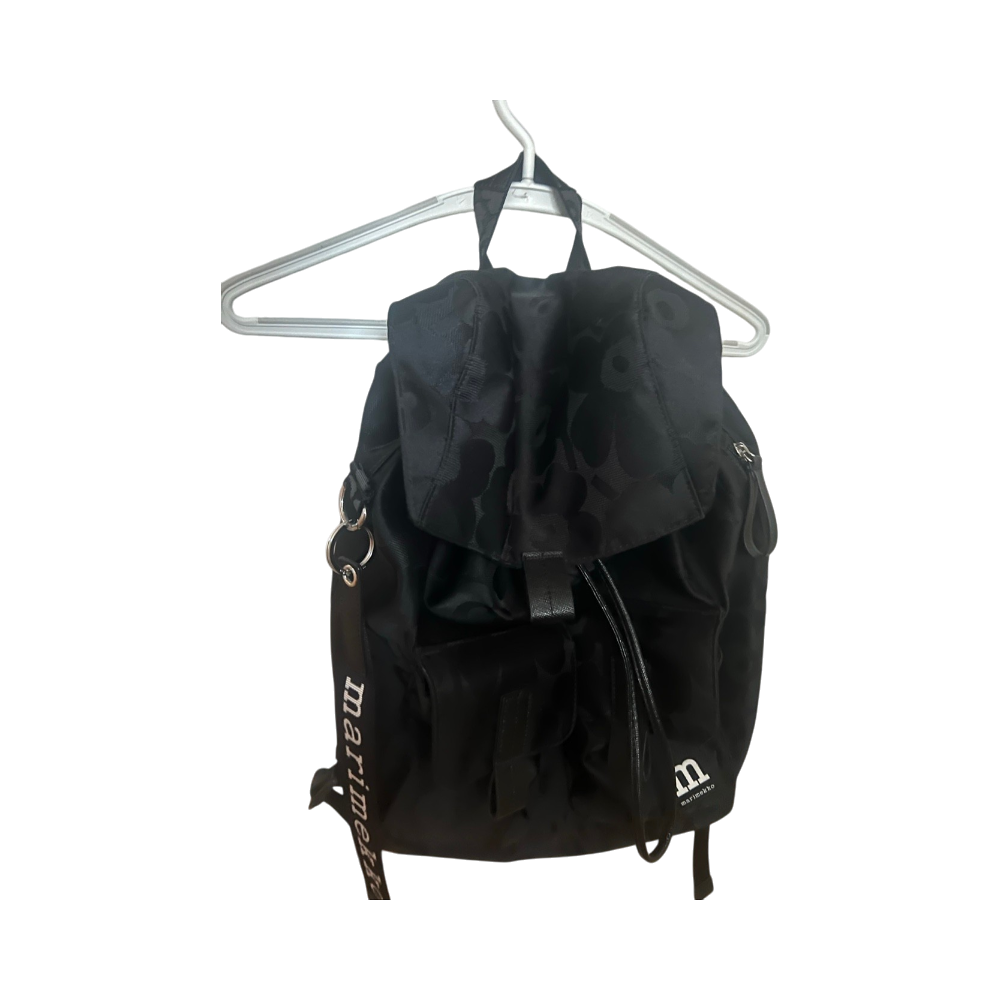 Tilava musta Marimekko-reppu, vetoketju- ja nyörikiinnitys. Muutaman kerran käytetty, uuttavastaava