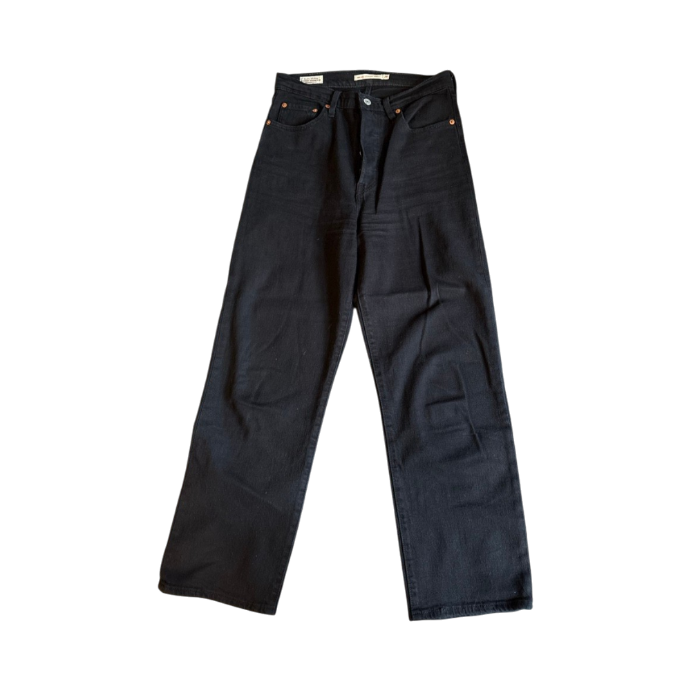 Musta suoralahkeiset farkut, korkeavyötäröiset, käytetyt.